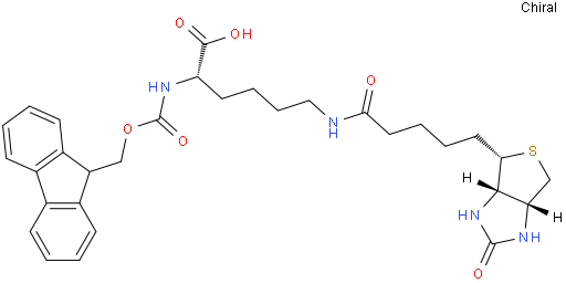 | Chemical Name | (2S)-6-[5-[(3aS,4S,6aR)-2-oxo-1,3,3a,4,6,6a-hexahydrothieno[3,4-d]imidazol-4-yl]pentanoylamino]-2-(9H-fluoren-9-ylmethoxycarbonylamino)hexanoic acid |
