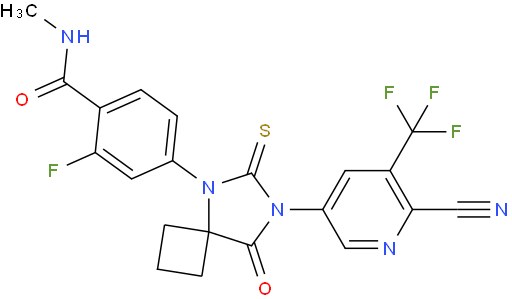 | Chemical Name | 4-[7-[6-cyano-5-(trifluoromethyl)pyridin-3-yl]-8-oxo-6-sulfanylidene-5,7-diazaspiro[3.4]octan-5-yl]-2-fluoro-N-methylbenzamide |