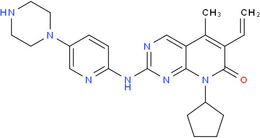 | Chemical Name | 8-cyclopentyl-5-methyl-2-((5-(piperazin-1-yl)pyridin-2-yl)amino)-6-vinylpyrido[2,3-d]pyrimidin-7(8H)-one |