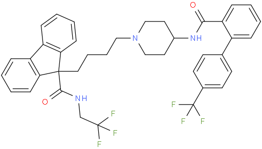 | Chemical Name | N-(2,2,2-trifluoroethyl)-9-(4-(4-(4'-(trifluoromethyl)biphenyl-2-ylcarboxamido)piperidin-1-yl)butyl)-9H-fluorene-9-carboxamide |