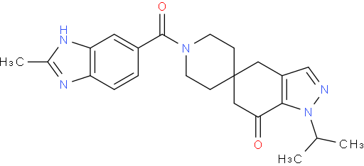 | Chemical Name | 1'-(2-methyl-3H-benzimidazole-5-carbonyl)-1-propan-2-ylspiro[4,6-dihydroindazole-5,4'-piperidine]-7-one |