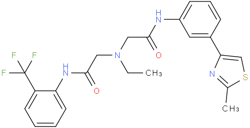 | Chemical Name | 2-(Ethyl(2-((3-(2-methylthiazol-4-yl)phenyl)amino)-2-oxoethyl)amino)-N-(2-(trifluoromethyl)phenyl)acetamide |