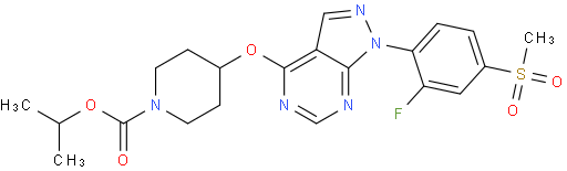 | Chemical Name | isopropyl 4-(1-(2-fluorine-4-(carbosulfonyl)phenyl)-1H-pyrazolo[3,4-D]pyrimidine-4-oxy)piperidine-1-carboxylate |