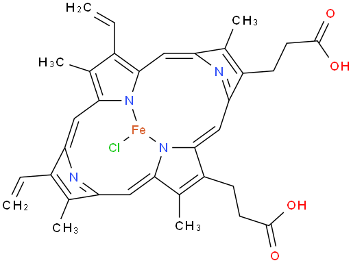 | Chemical Name | 1,3,5,8-Tetramethyl-2,4-divinylporphine-6,7-dipropionic acid ferrichloride |