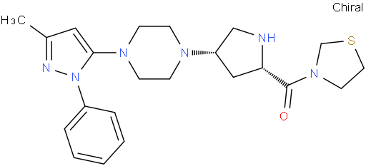| Chemical Name | [(2S,4S)-4-[4-(5-methyl-2-phenylpyrazol-3-yl)piperazin-1-yl]pyrrolidin-2-yl]-(1,3-thiazolidin-3-yl)methanone |
